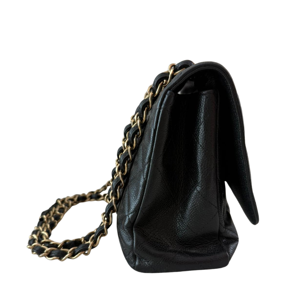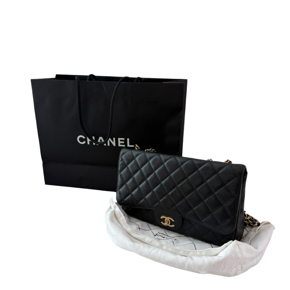Chanel jumbo Classic Double Flap Bag Black Caviar Gold Hardware