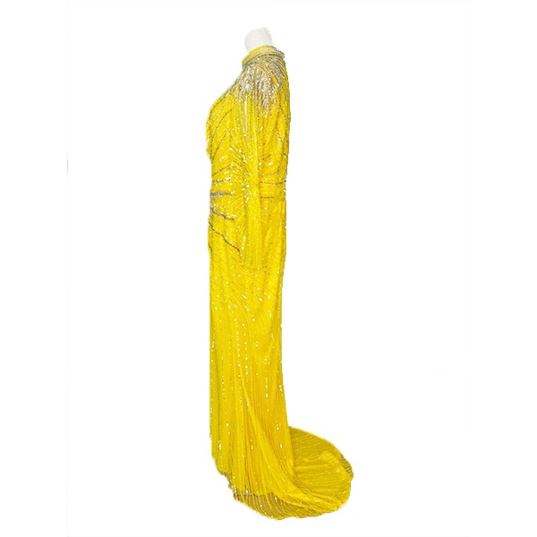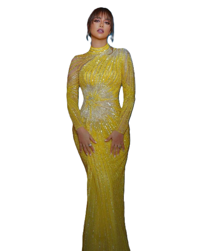 The dress is from Labourjoisie Same design as the picture, but the dress is not wrapped/has a side slit that’s not too big. Worn only once, clean and like new. Purchase Price: 20,000 QAR Selling Price: 12,000 QAR (negotiable) Size: M to XL (with an option to adjust the waist size inside the dress)