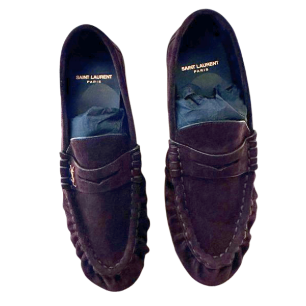 Le Loafer Suede Penny Loafers – Saint Laurent Condition: Brand New Size: 39 Color: BrownBatra provides authenticity verification and international shipping. Please contact us before purchasing to ensure a safe transaction.