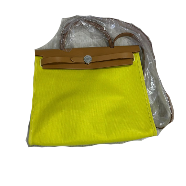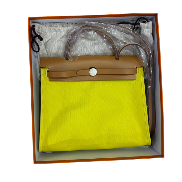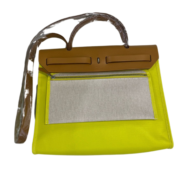 LIME CANVAS & SABLE VACHE HUNTER LEATHER HERBAG 31 WITH PALLADIUM HARDWARE