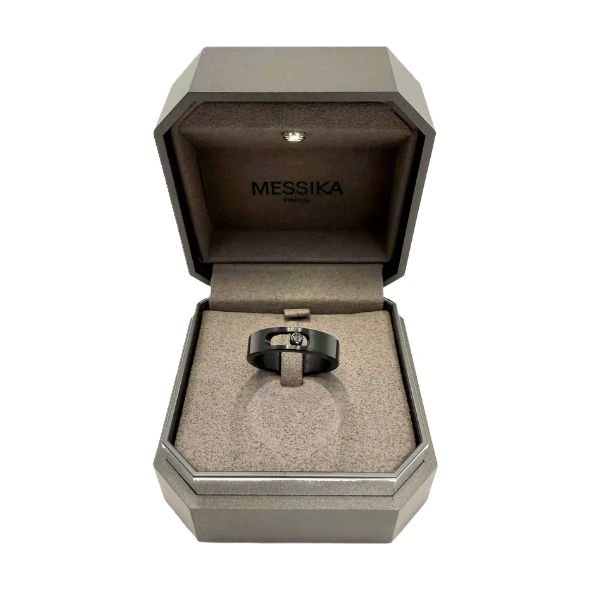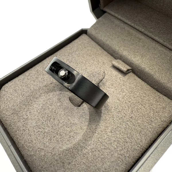 Black titanium ring set with one moving brilliant-cut black diamond from the iconic Messika Move collection. Sleek and masculine design, perfect as a wedding ring or fashion statement. Condition: Excellent