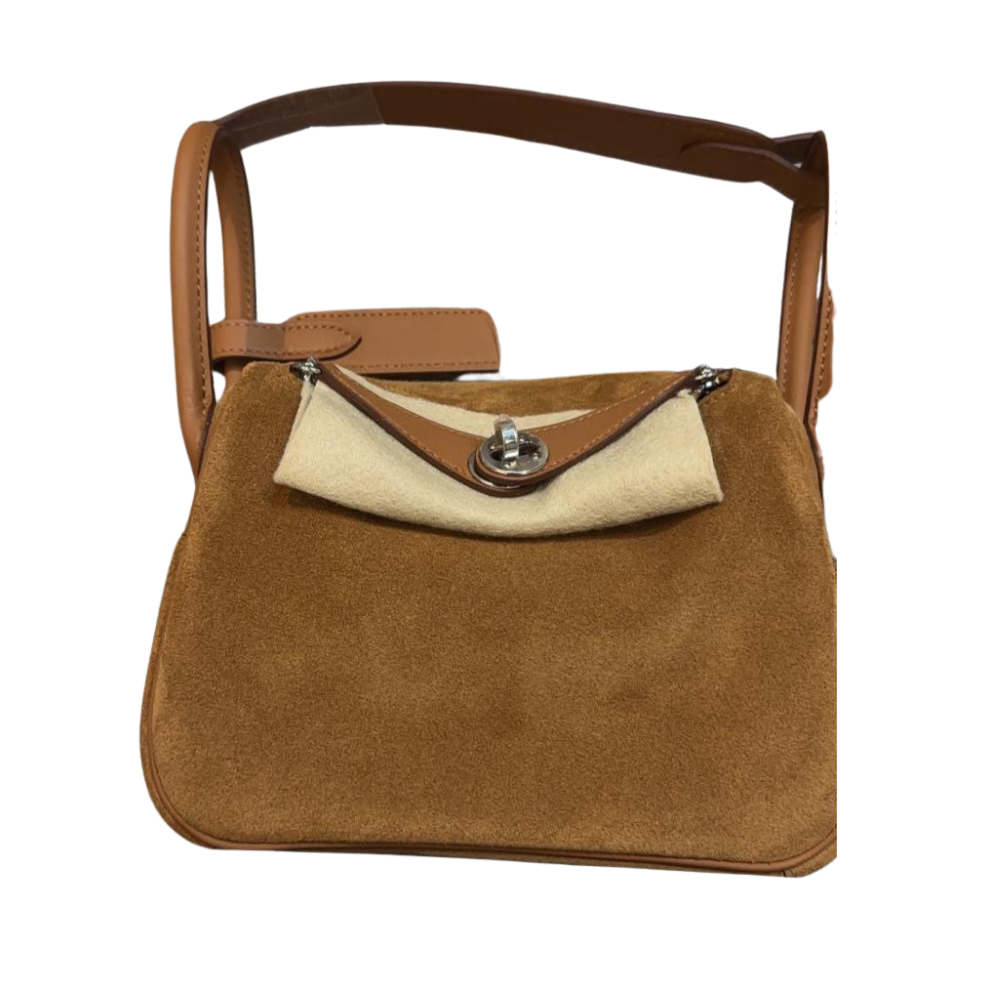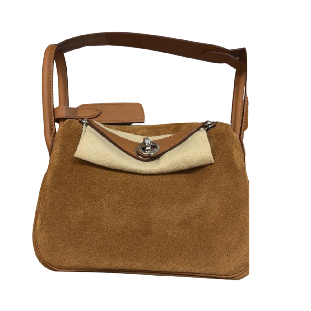 Herme MINI LINDY GRIZZLY BAG IN GOLD SUEDE AND SWIFT LEATHER WITH PALLADIUM HARDWARE
