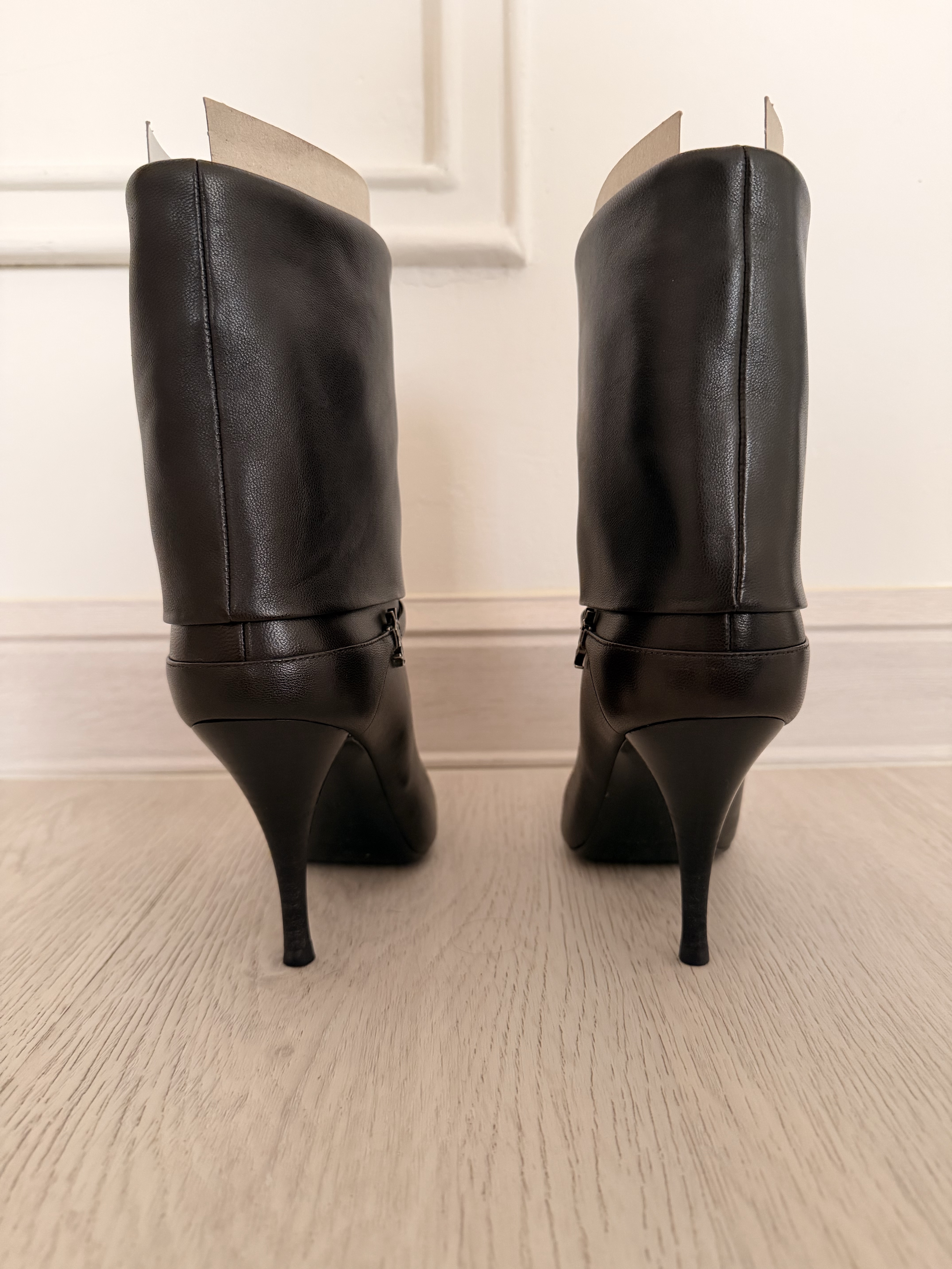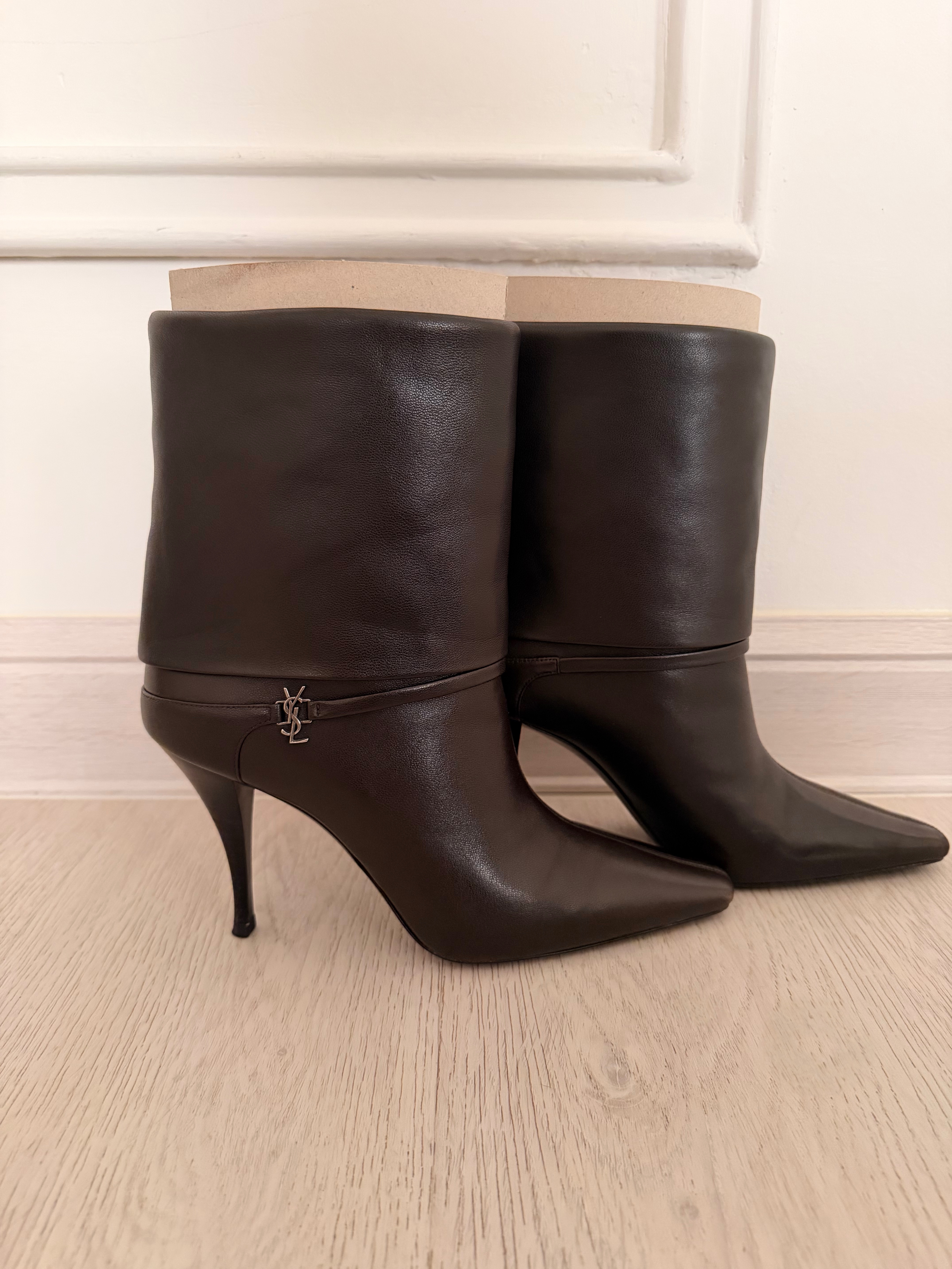 Saint Laurent Niki Leather YSL Buckle Ankle Booties