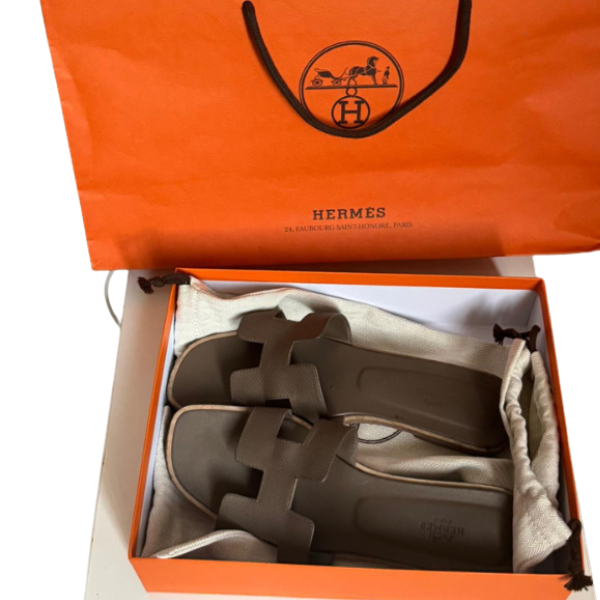 Hermès Oran Sandal – Étoupe Size: 40 Condition: Used Purchased from: Doha Airport Includes: Full set with original receipt