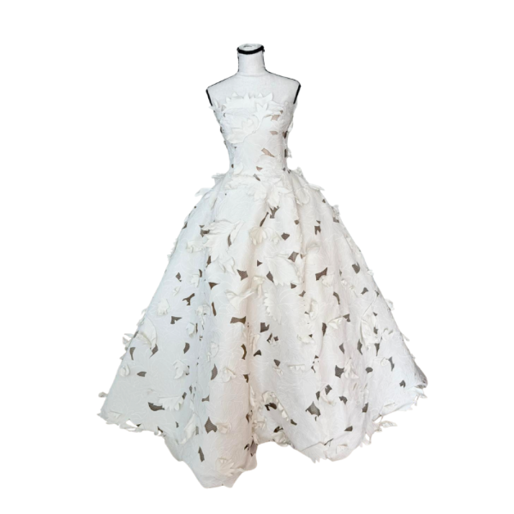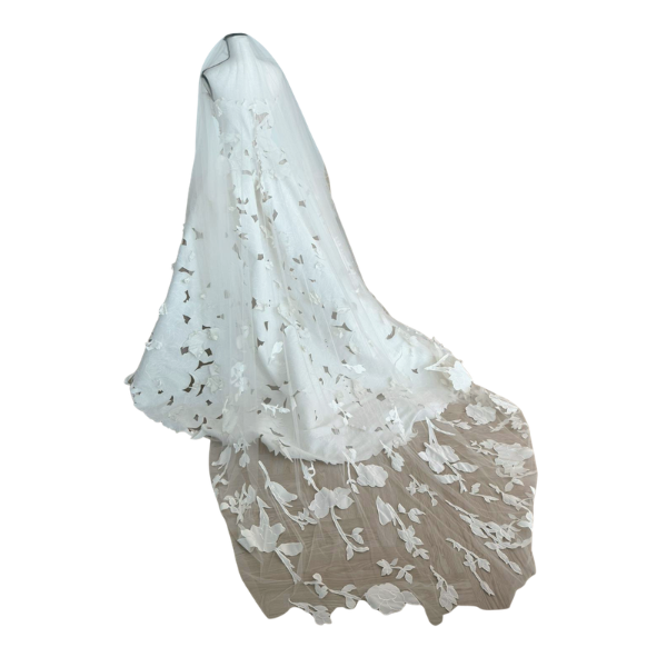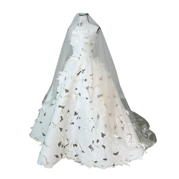 Accessories include the veil, hangers, and Oscar dress covering.