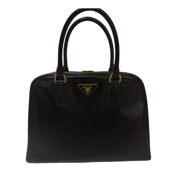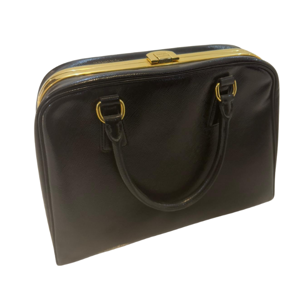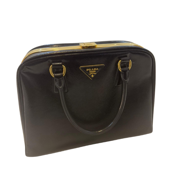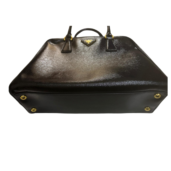 PRADA – Saffiano Lux Black Leather with Gold Hardware Condition: Excellent No Accessories Included