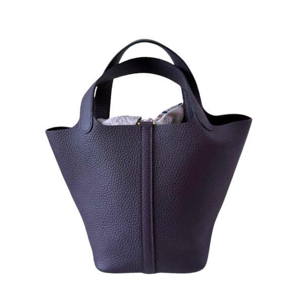 Hermès Picotin 18 Clemence Raisin Condition: Pre-owned in excellent condition – used only once