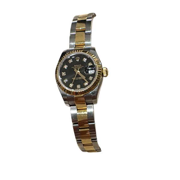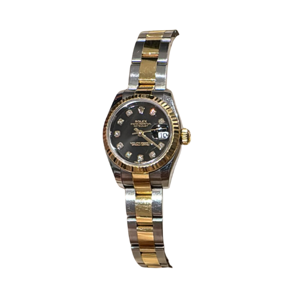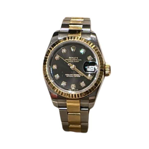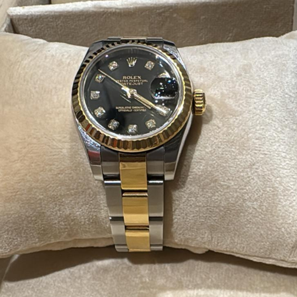 Rolex Rolex Lady-Datejust 31 mm Black Diamond Dial Watch Gold and Steel / Automatic Model 2015 Used – Excellent Condition Accessories: Warranty Card
