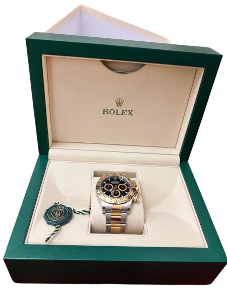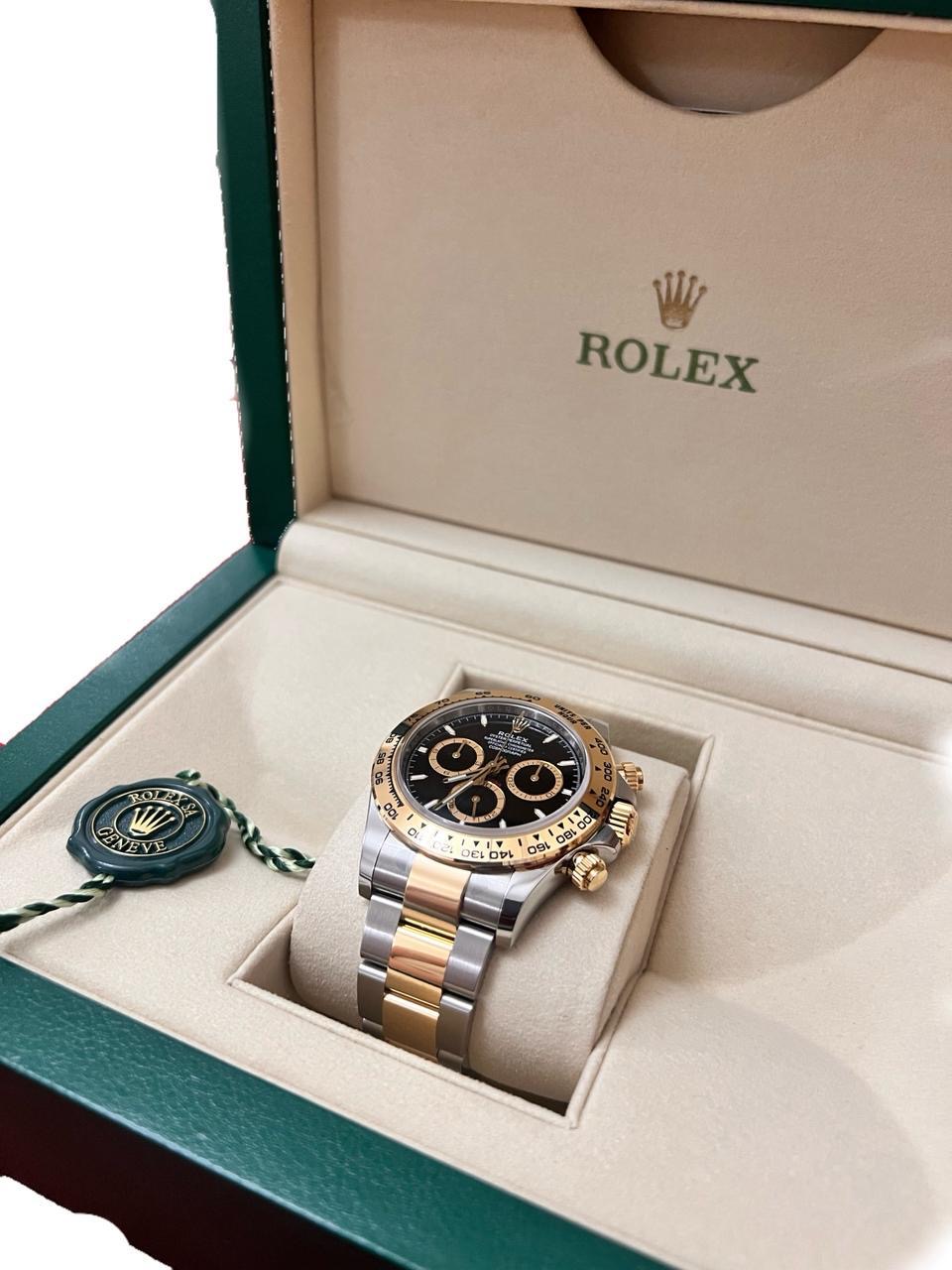 Year: December 2024 Case Size: 40 mm Material: Yellow Rolesor (Steel + 18k Yellow Gold) Dial: Black with gold sub-dials Condition: Brand new (2024) Includes: Full set (box, certificate, and papers)