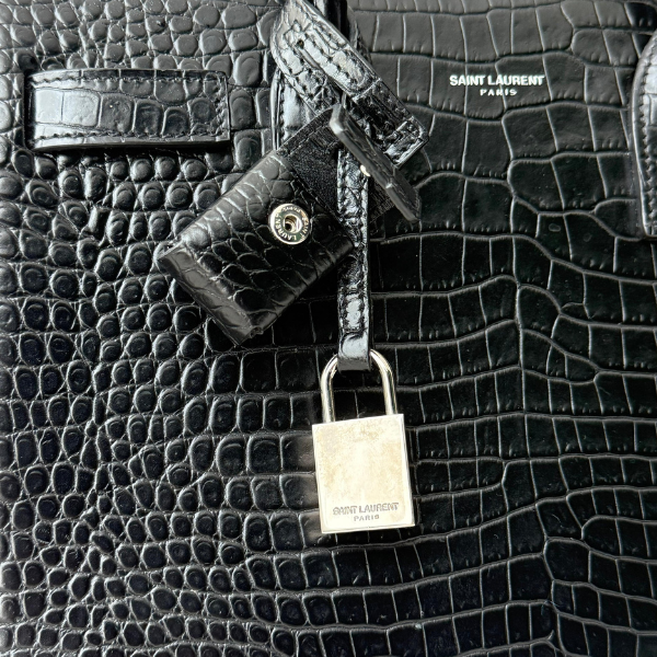 SAINT LAURENT Sac De Jour Baby Tote Bag in Croc-Embossed Leather Condition: Used Accessories: Card and Dust Bag