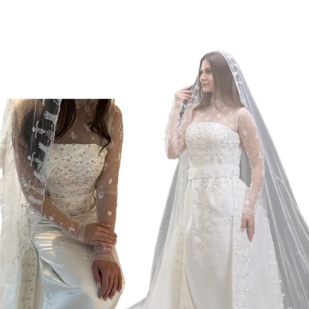 Bridal Dress – Custom-made by Sima Couture Size: Small to Medium Condition: Excellent (with structure/boning)Accessories: Dress with veil included