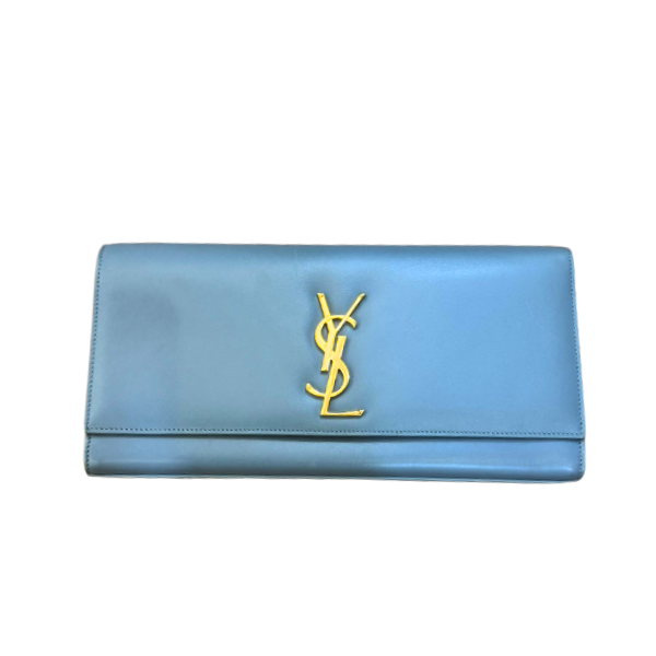 Smooth Calfskin Classic Monogram Cassandre Clutch Blue Glacier