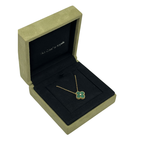 Limited Edition Van Cleef & Arpels 18K Yellow Gold Diamond Malachite Vintage Alhambra Pendant Necklace Condition: Pre-owned Accessories: Box