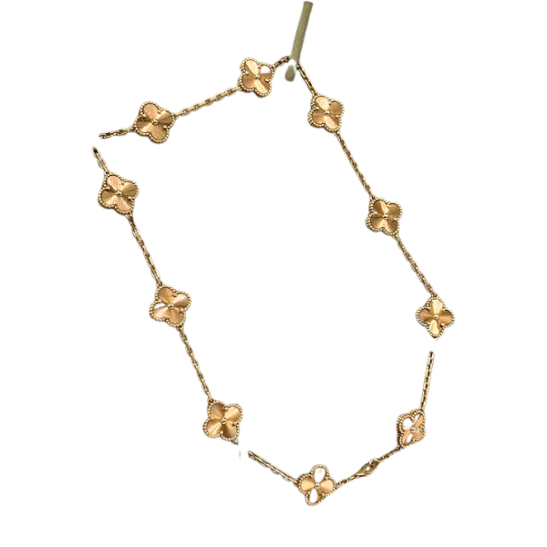 Van Cleef & Arpels Vintage Alhambra 10 Motif Station Necklace – Textured 18K Yellow Gold