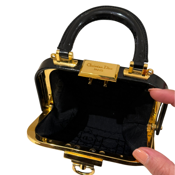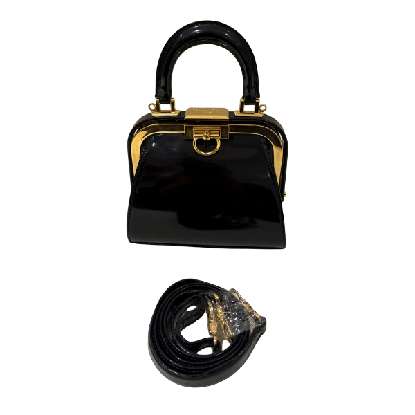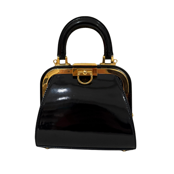 patent leather , gold hardware.