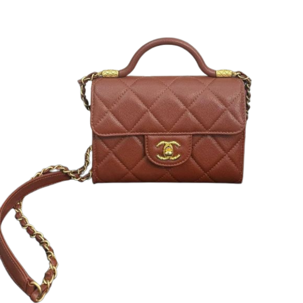Chanel Seasonal Mini Flap with Top Handle – Brown, Caviar Leather • Condition: Brand New • Original Price: 26,000 QAR • Selling Price: 18,000 QAR • Full Set