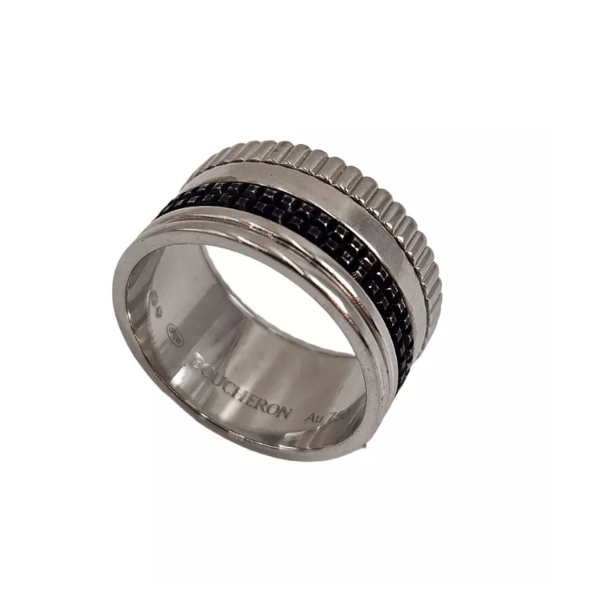 Good condition 18K three-tone gold ring from the Quatre collection Intricate design with stacked band style Classic and luxurious piece