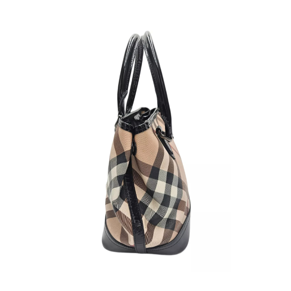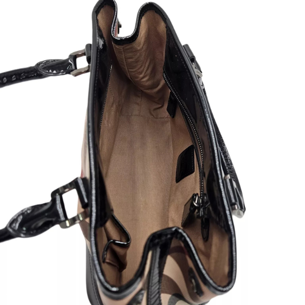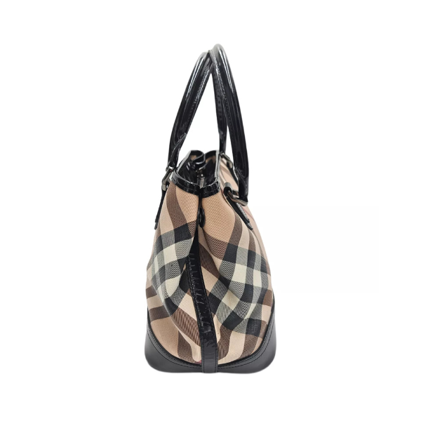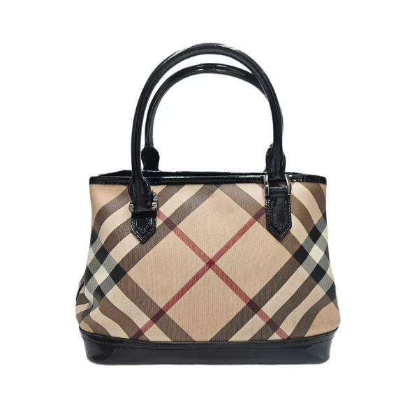 Excellent condition Crafted from Nova Check PVC with patent leather details Spacious, stylish, and practical for daily use