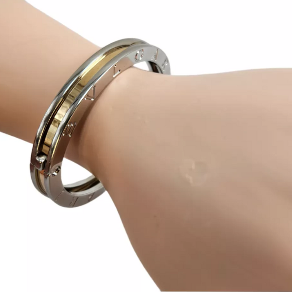 Condition: Good Crafted from stainless steel with 18k yellow gold accents From the iconic B.Zero1 collection inspired by the Colosseum and modern Italian design Features the signature Bvlgari logo engraving A timeless and elegant piece that blends strength with luxury