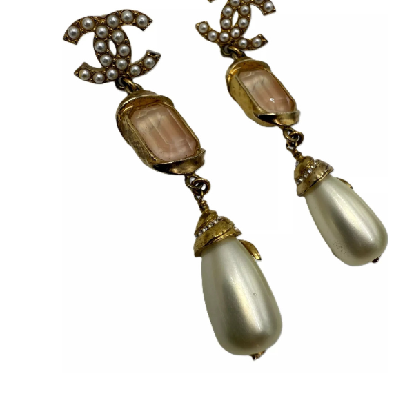 Chanel Pearl Drop Swing Yellow Gold Earrings