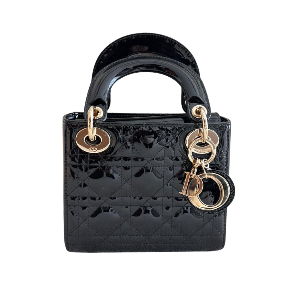 Patent Cannage Mini Lady Dior Black