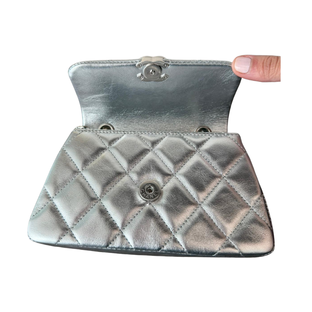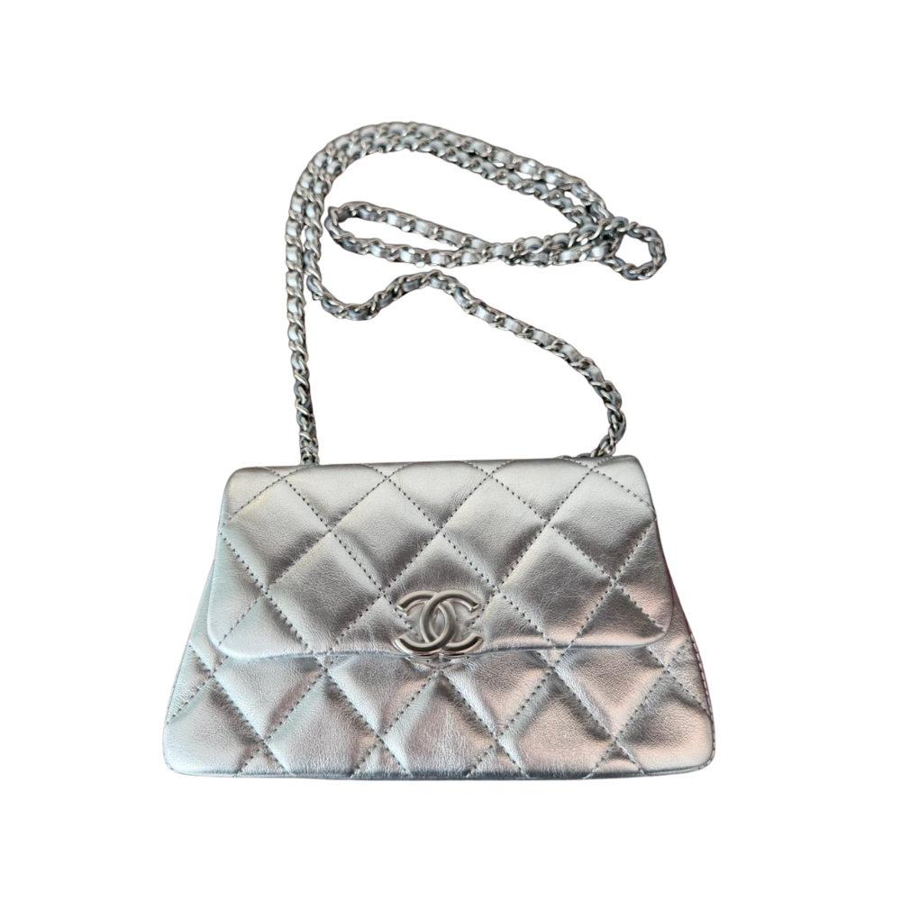 ChanelChanel Rhomboid Mini Flap – Silver Calfskin, 2025Includes: Full set