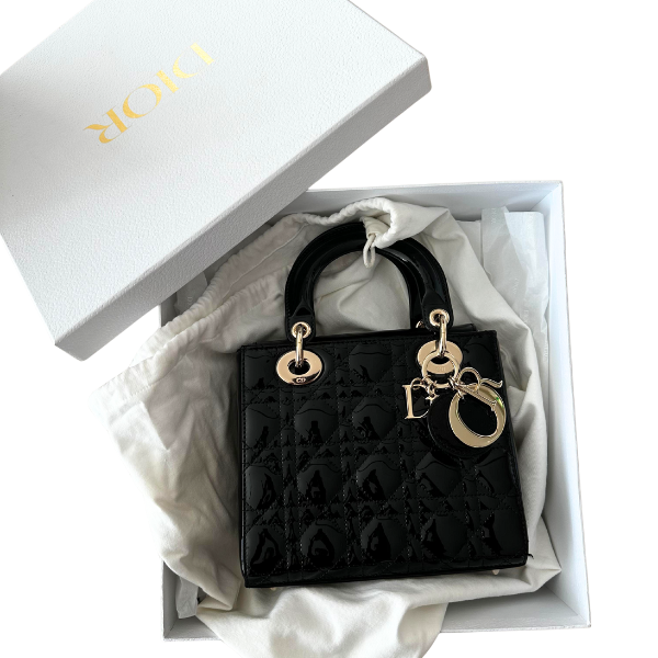 Material: Black Patent Cannage Calfskin Condition: Excellent