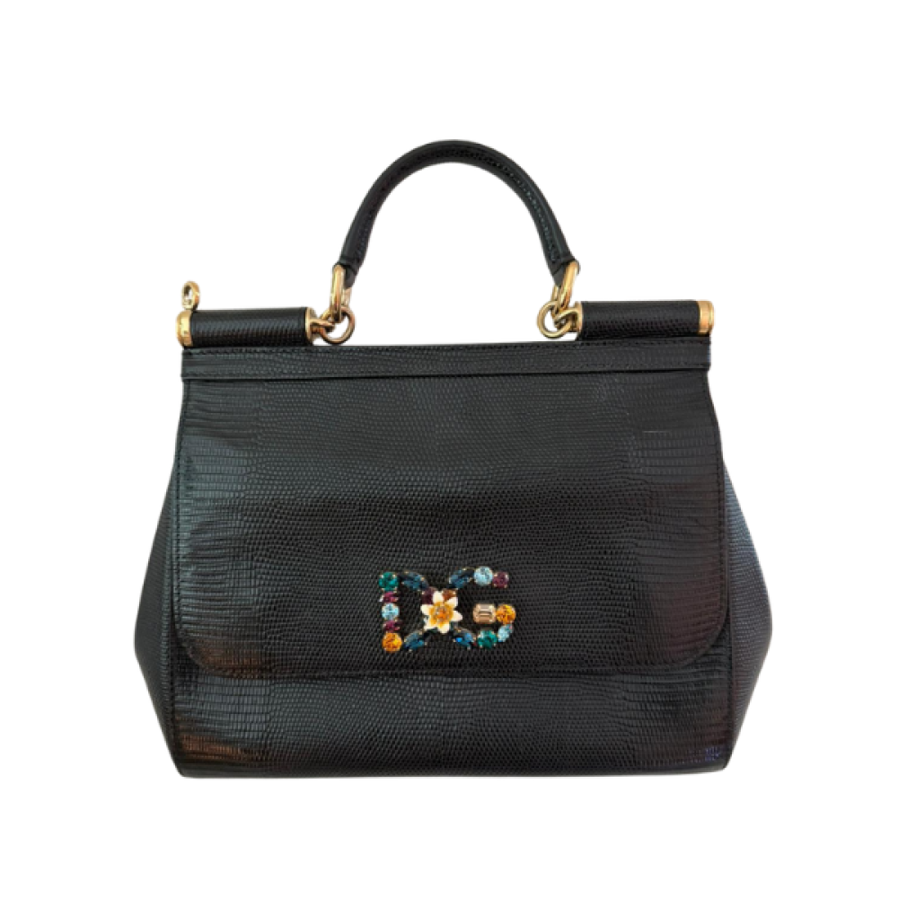 Dolce & Gabbana Black Small Iguana Millennials Shoulder Bag