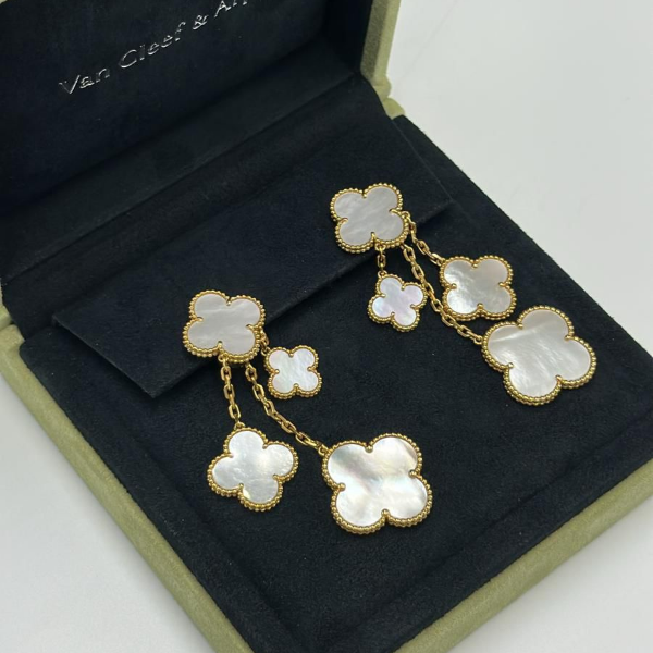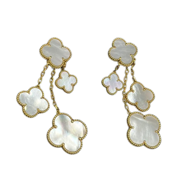 Van Cleef & Arpels Magic Alhambra 4 Motif Earrings – Mother of Pearl, 18K Yellow Gold Condition: Used Includes: Box Only