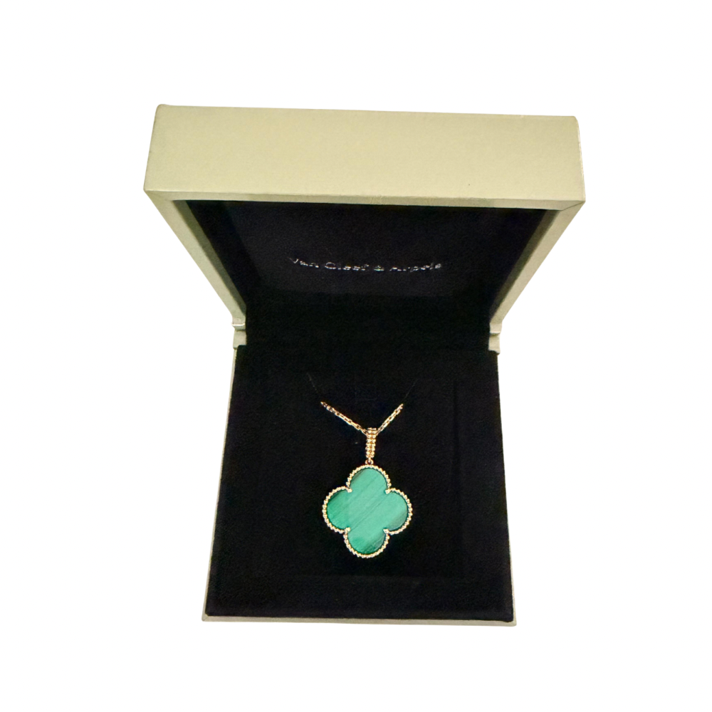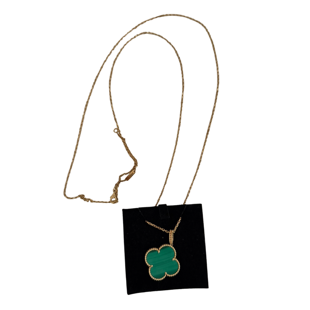 Magic Alhambra Malachite Yellow Gold Long Pendant Necklace