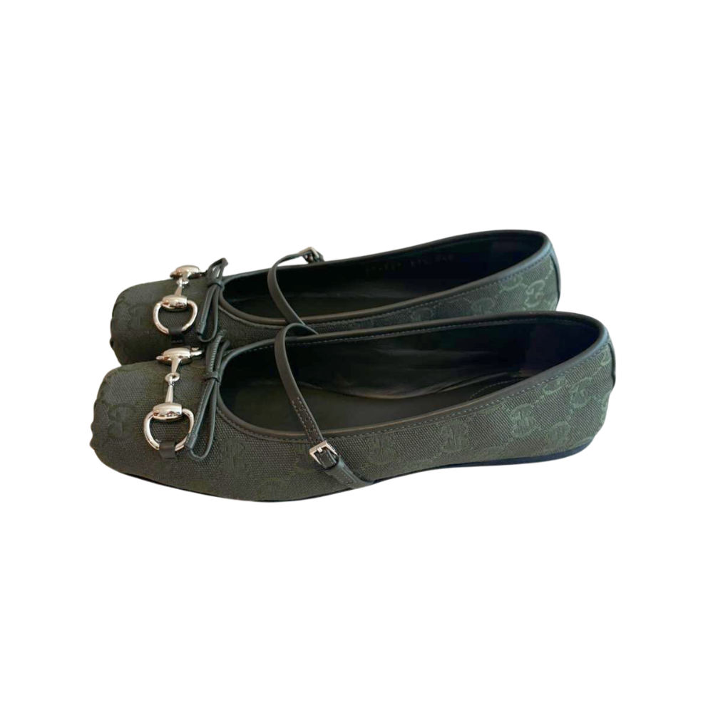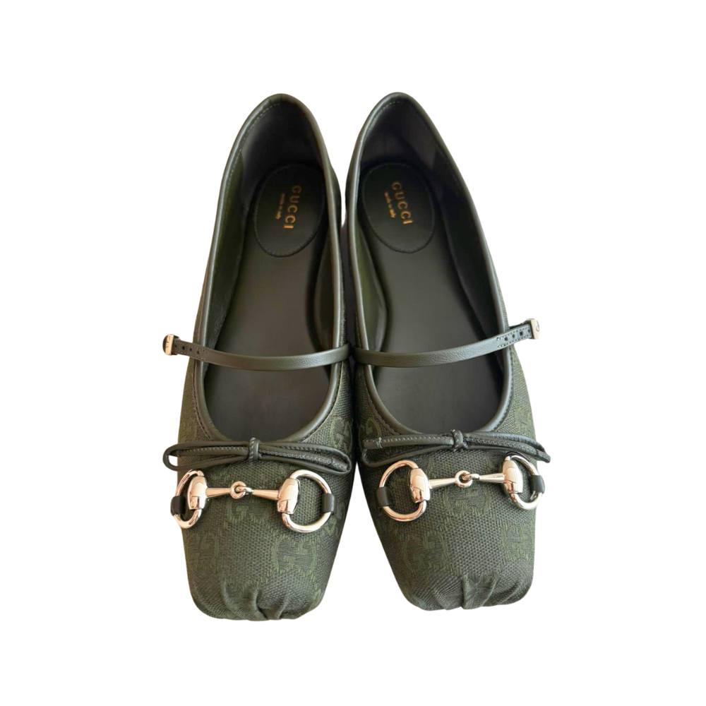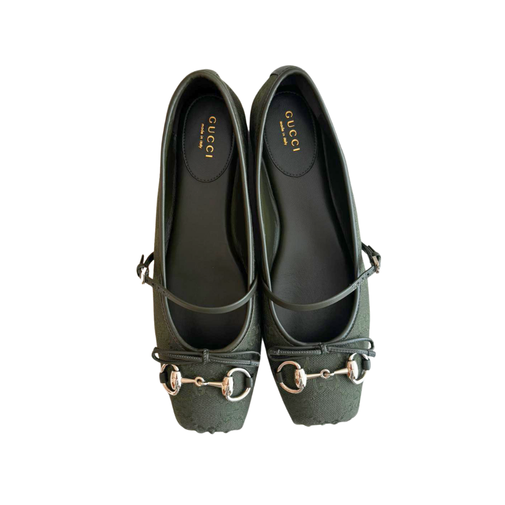 Women's Gucci Horsebit ballet flat in dark green GG canvas
