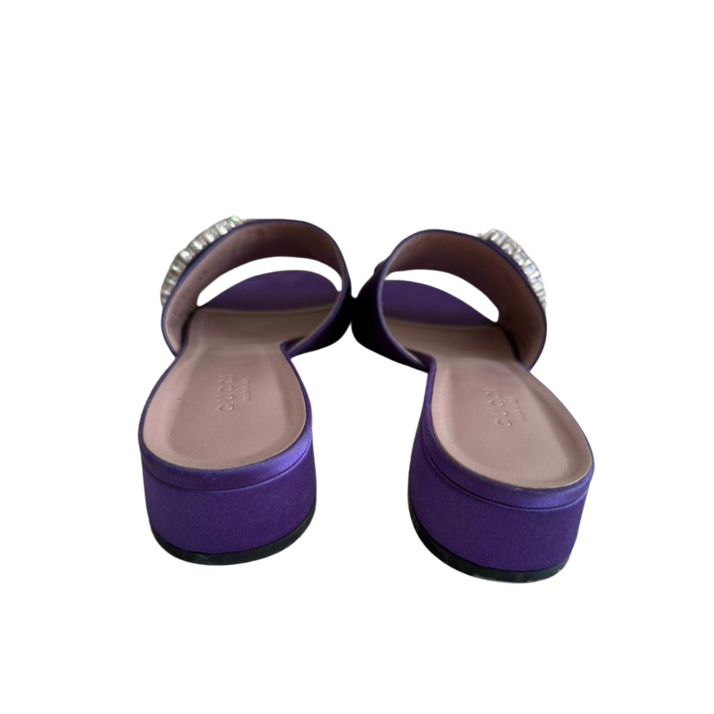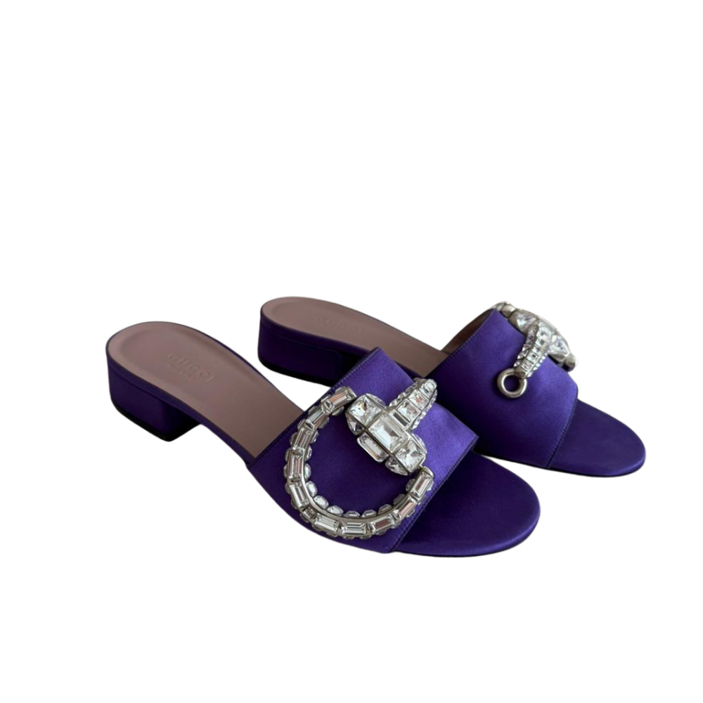 GucciMaxime Crystal Horsebit Suede Slide Sandals purple 37