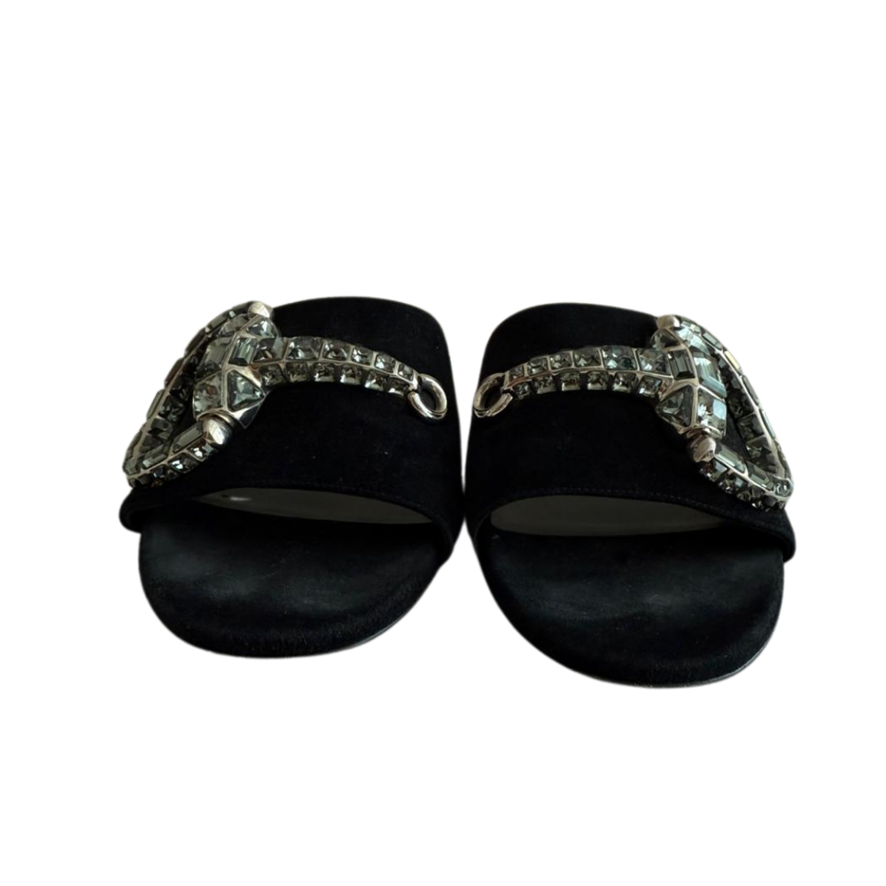 GucciMaxime Crystal Horsebit Suede Slide Sandals Black 37