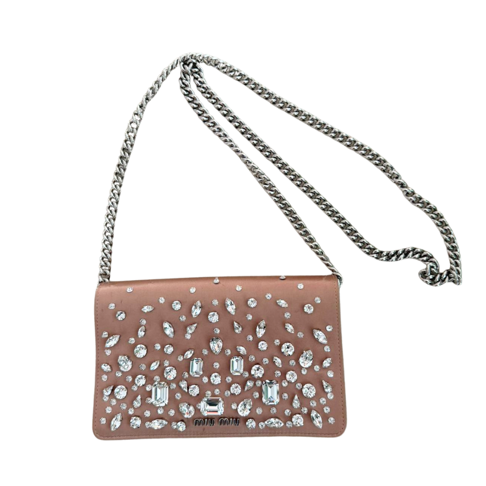 Black Satin Crystal-Embellished Cross-Body Bag