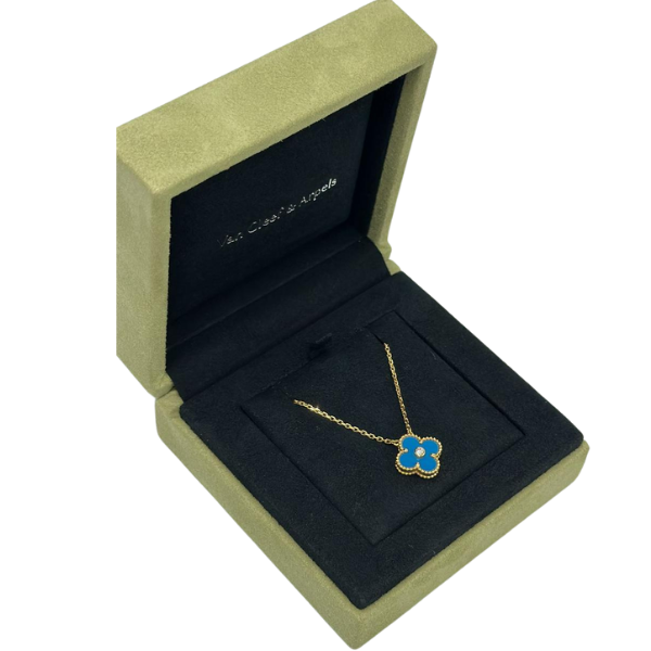 Limited Edition Van Cleef & Arpels 18K Yellow Gold Diamond Celestial Blue Sèvres Porcelain Vintage Alhambra Pendant Necklace Condition: Pre-owned Accessories: Box + Warranty Card