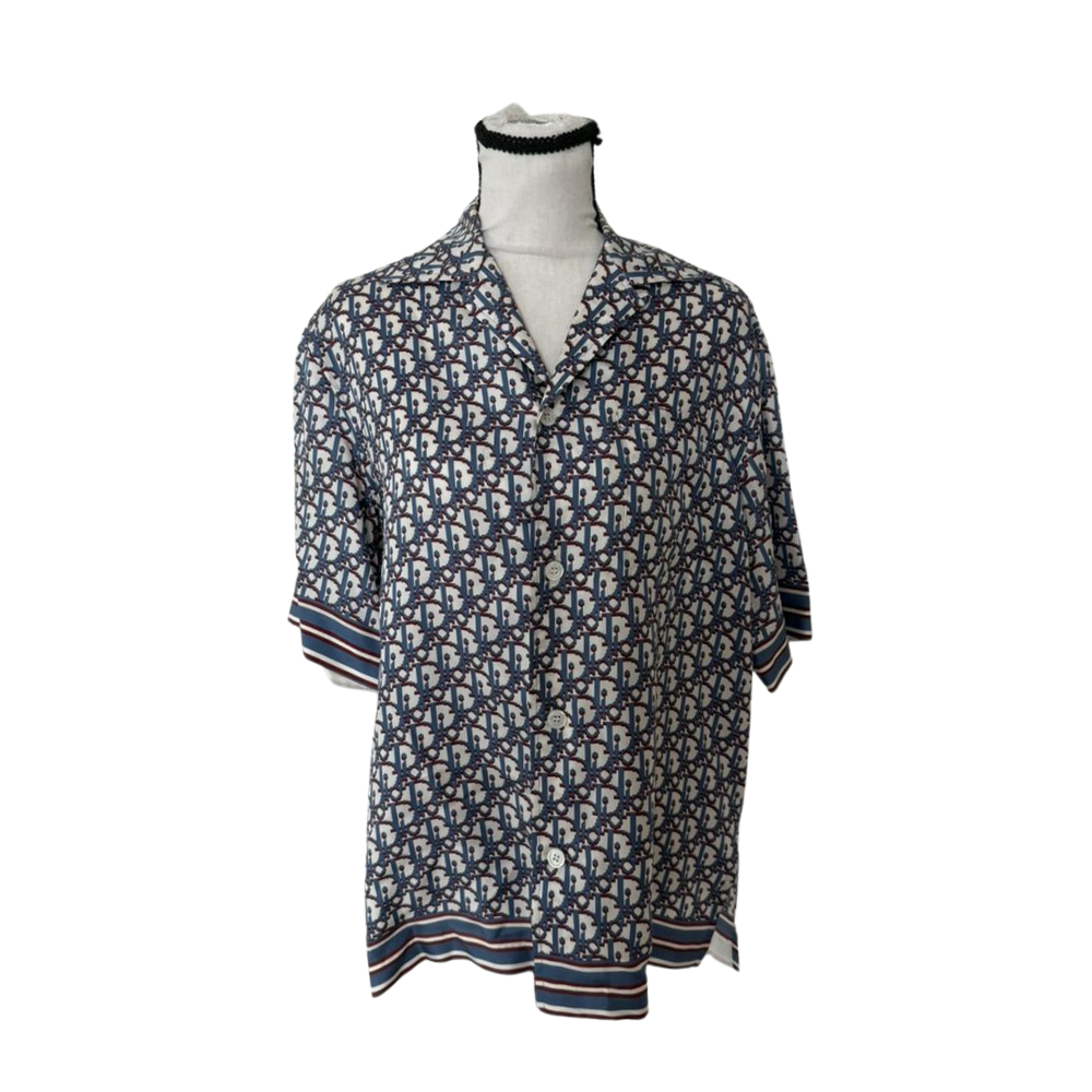 DIOR Dior Chez Moi Short-Sleeved Shirt Blue Dior Oblique Silk Twill Size: 37 (M/L) Condition: Used in excellent conditionInclusions: Full set