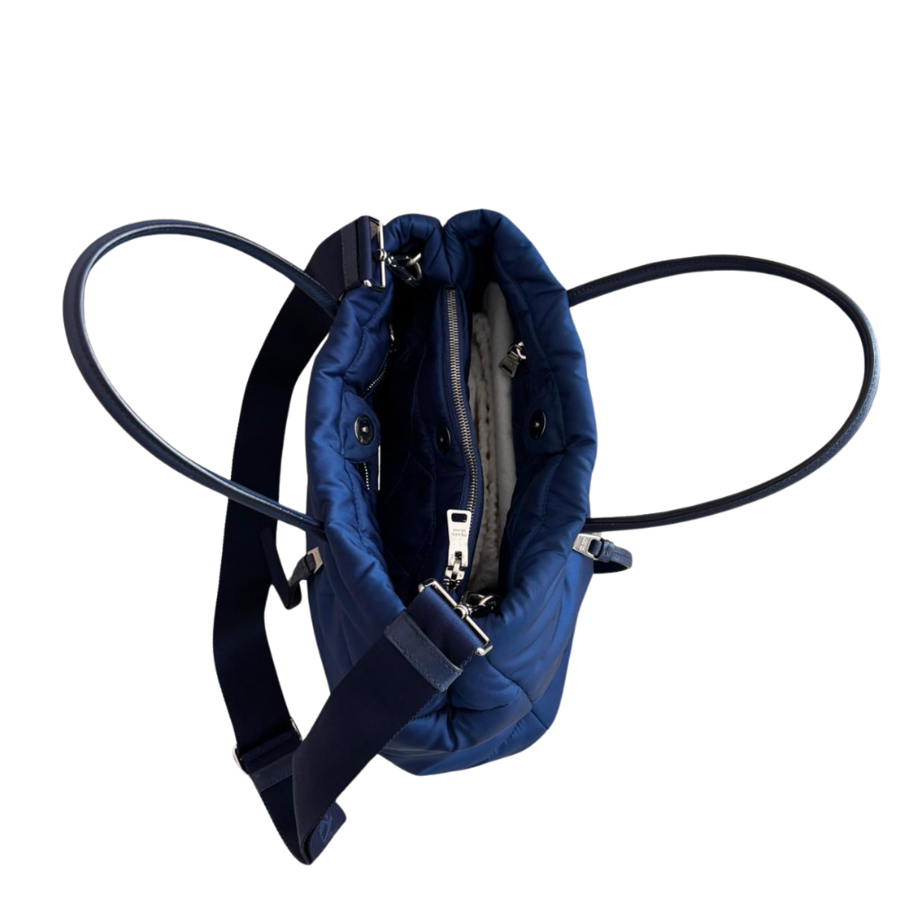 Prada Bomber Tote Tessuto Blue Nylon Bag