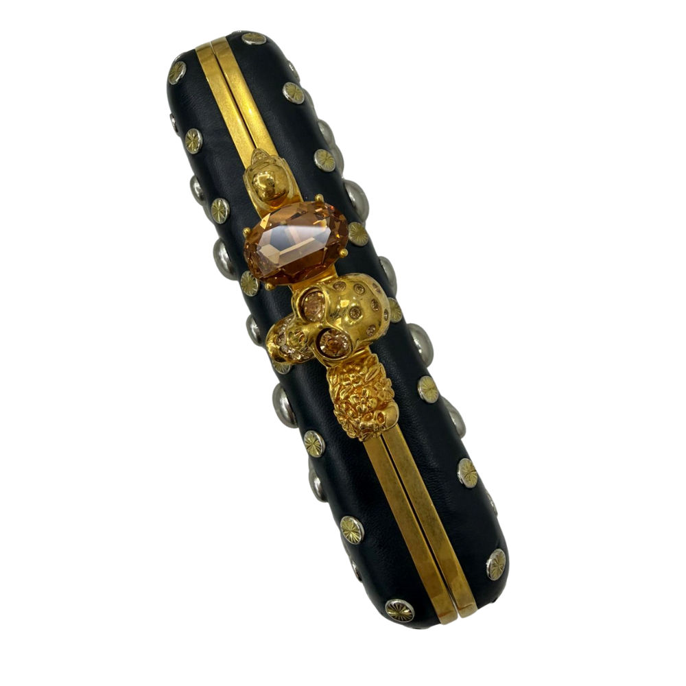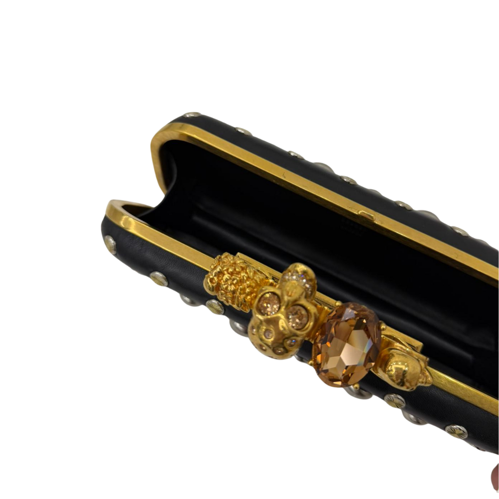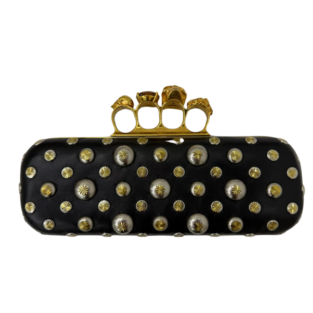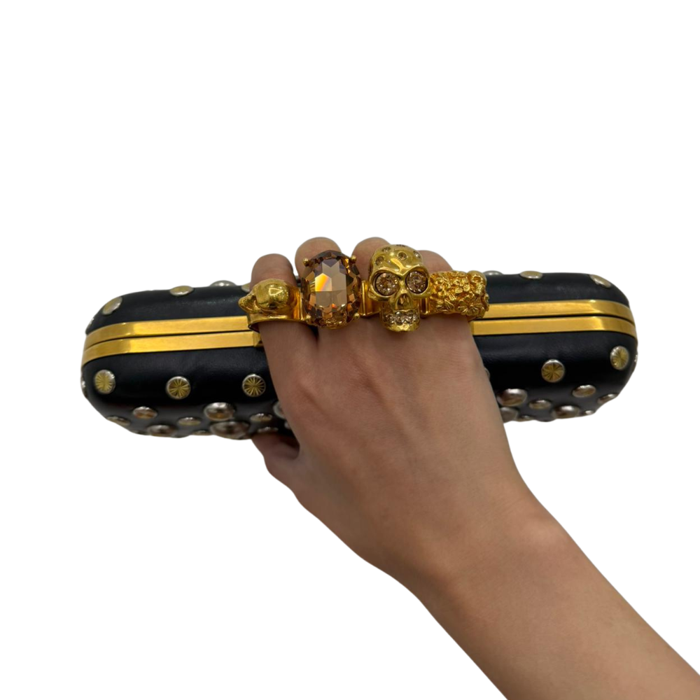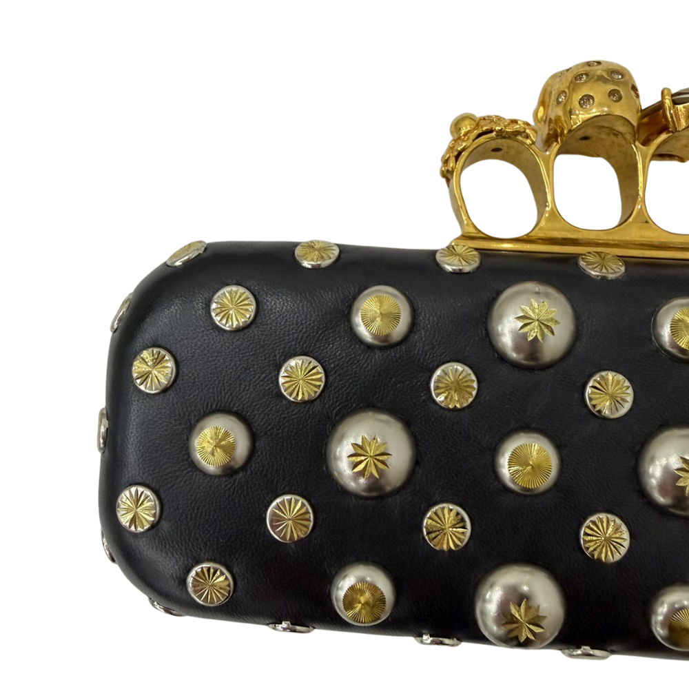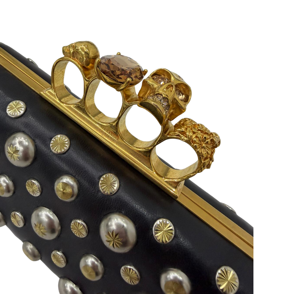 ALEXANDER MCQUEEN Black Leather Studded Knuckle Box Clutch Bag