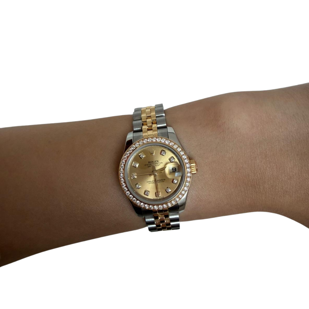 Rolex Datejust Steel & Gold 26mmChampagne Diamond Dial & Diamond Bezel