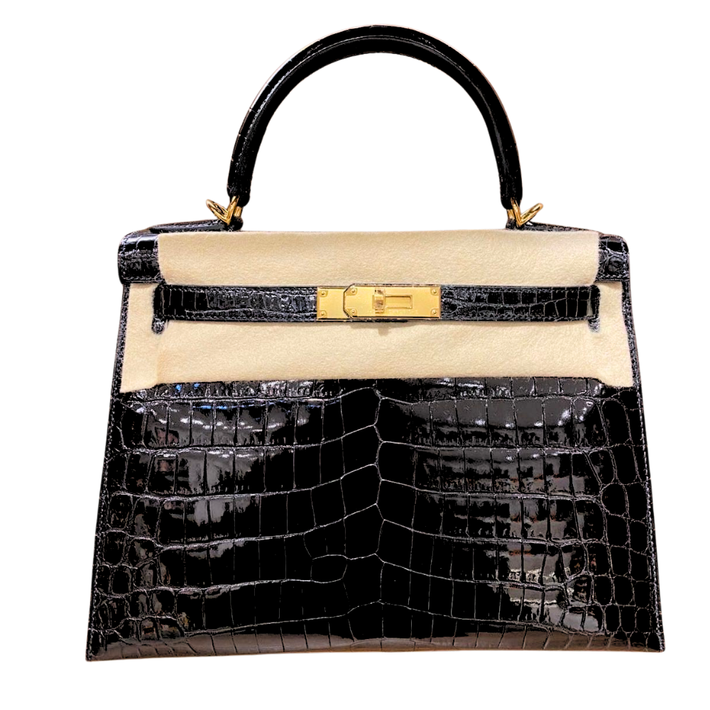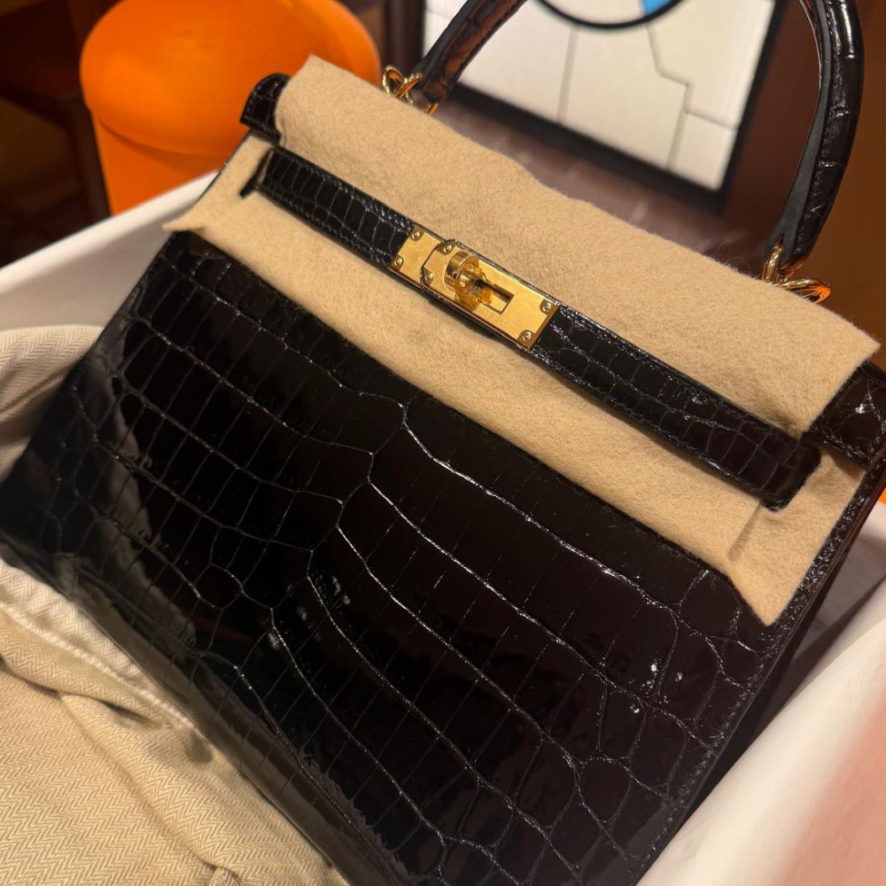 Hermès Sellier Kelly 28 in Shiny Niloticus Crocodile Leather with Gold Hardware Color: Black Condition: NewAccessories: Full set (all accessories included)