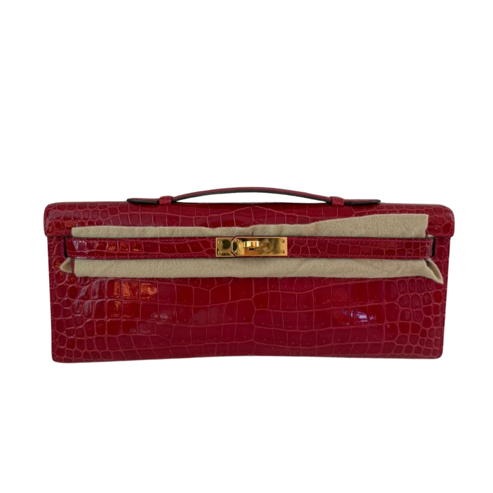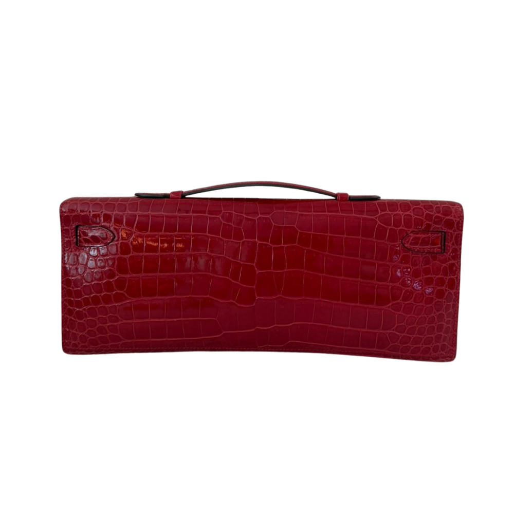 HERMÈS Shiny Porosus Crocodile Kelly Cut Pochette