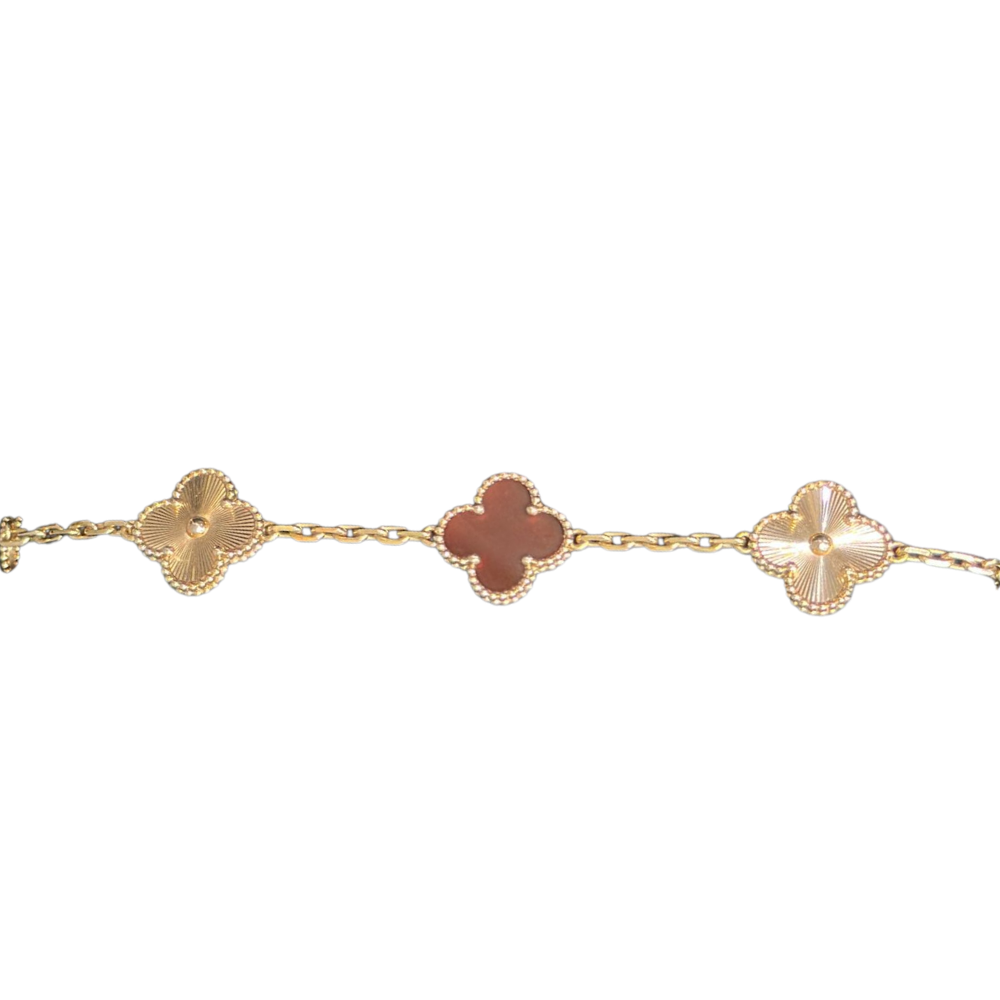 VAN CLEEF & ARPELS VINTAGE ALHAMBRA BRACELET 5 MOTIFS ROSE GOLD, CARNELIAN