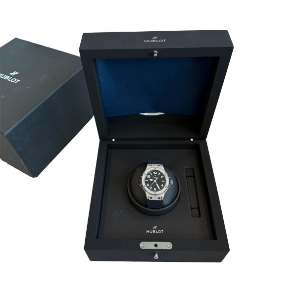 Hublot – Big Bang 38mm Stainless Steel with Diamonds | Size: 38 Condition: Excellent | Color: Black Includes: Box & Warranty Card