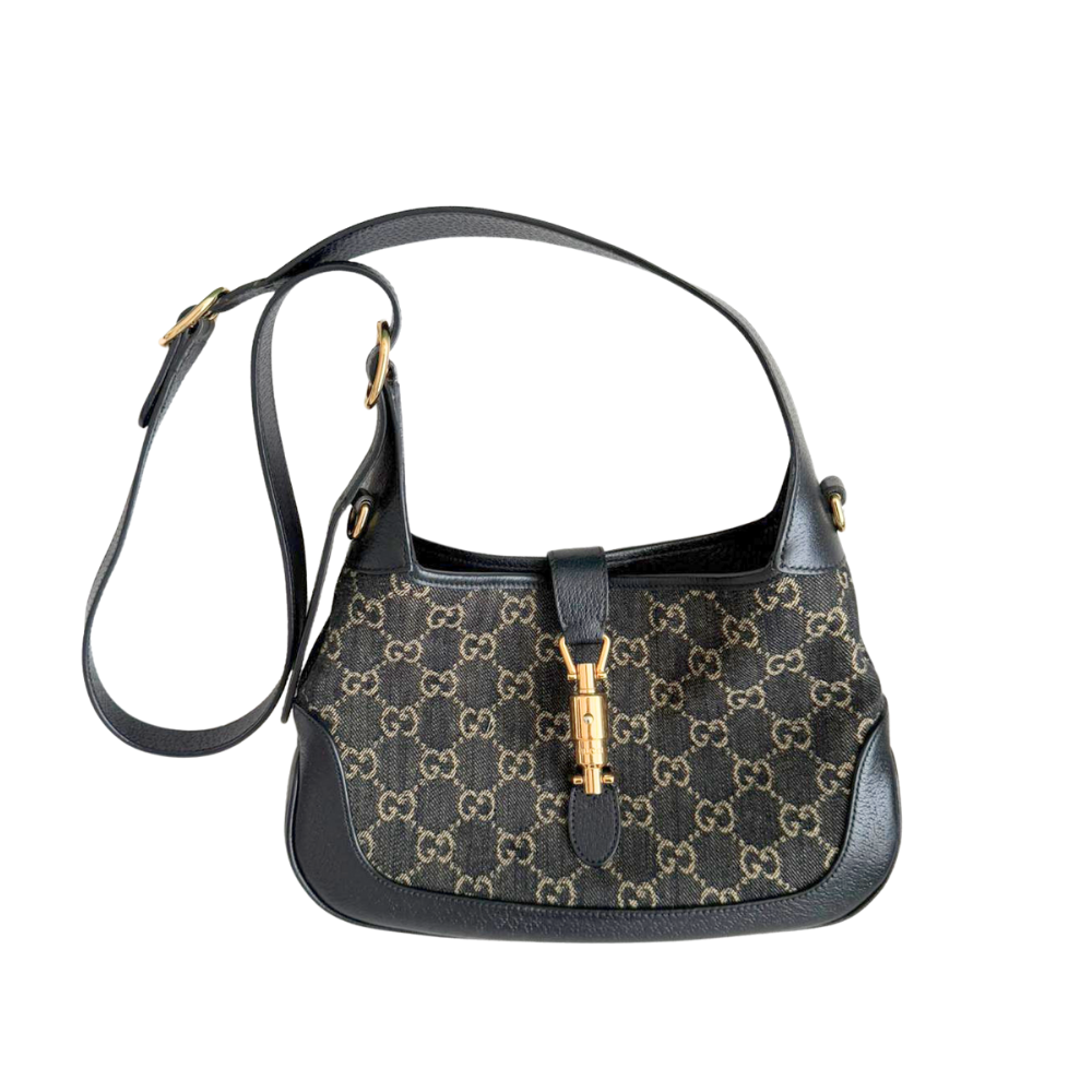 Brand: Gucci Model: Black Jacquard Denim GG Monogram Small Jackie 1961 Hobo Condition: Used — excellent condition Accessories: Full set included, except for the box