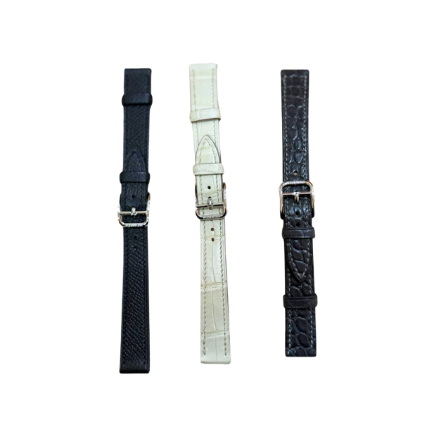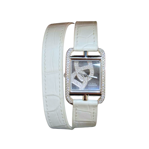 Comes with a white double tour strapIncludes box, Hermès pouch, card, and warrantyBonus: 3 extra straps (grey, beige, black) included for free
