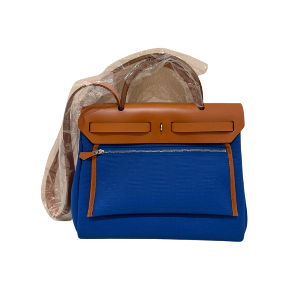 Hermès Herbag 31 – Bleu France Toile H with Fauve Vache Hunter and Palladium Hardware