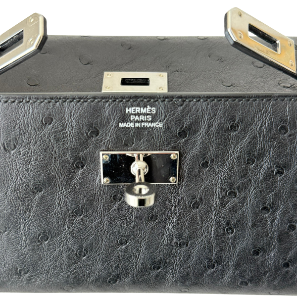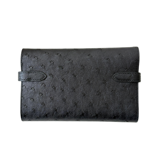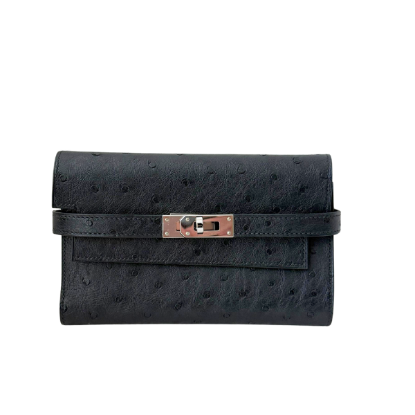 Hermes Kelly Depliant Wallet Medium Ostrich black silver hardware