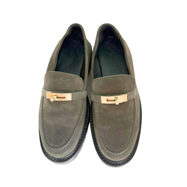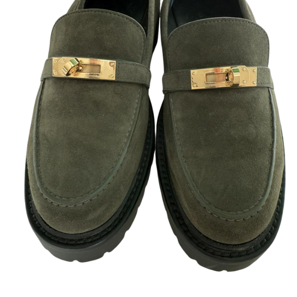 Model: Hermès Loafer Color: Green Size: — 38 Condition: Worn once only Includes: Dust bag and box