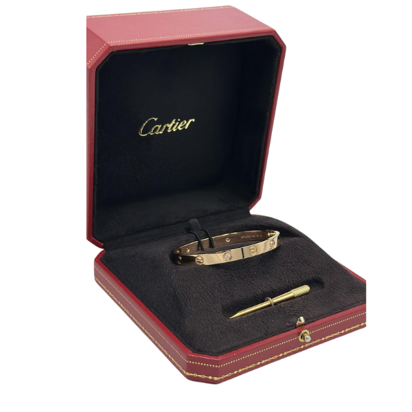Cartier Love Bracelet Rose Gold 4 Diamonds Condition: Used Size: 17 Wide Model Includes: Box + Warranty Card