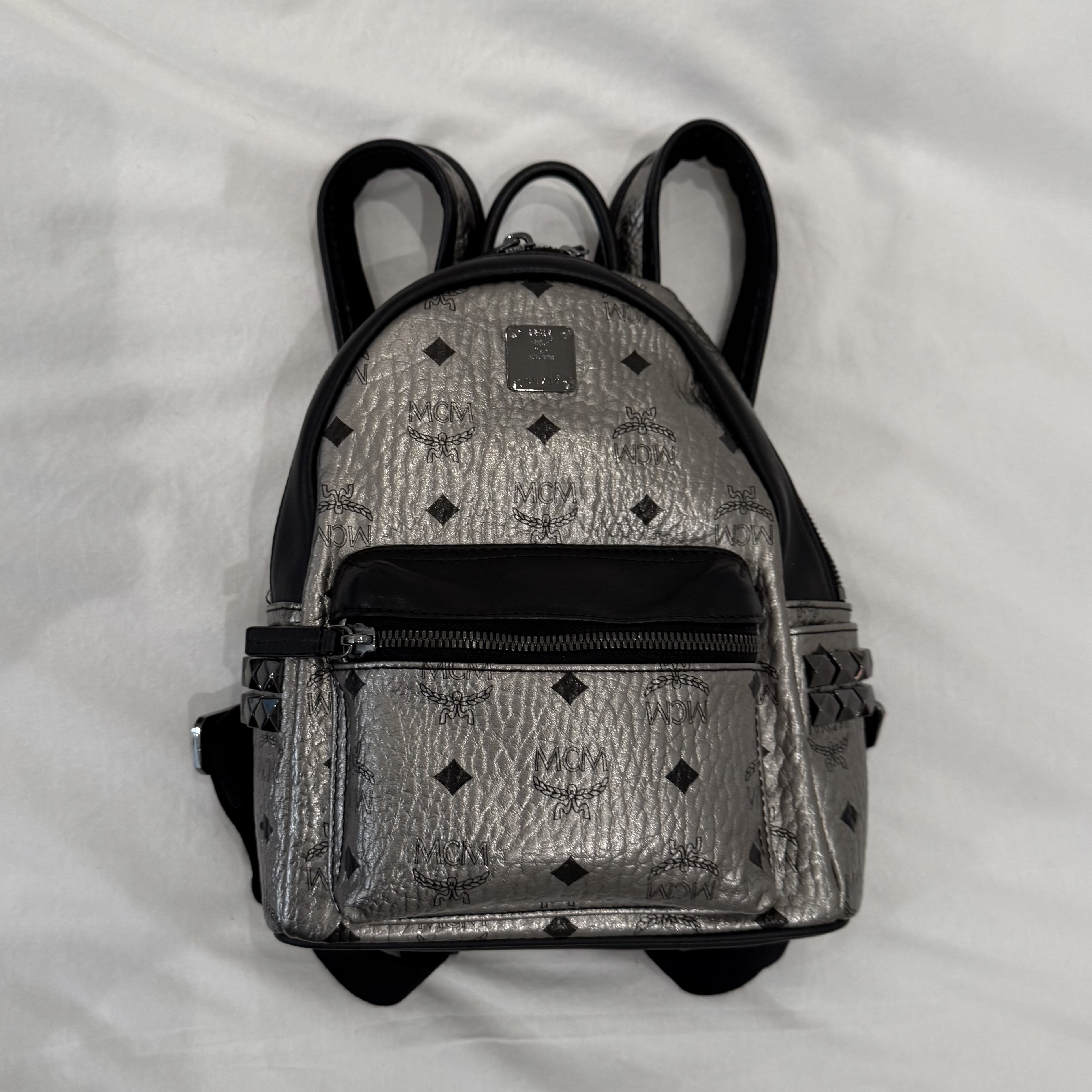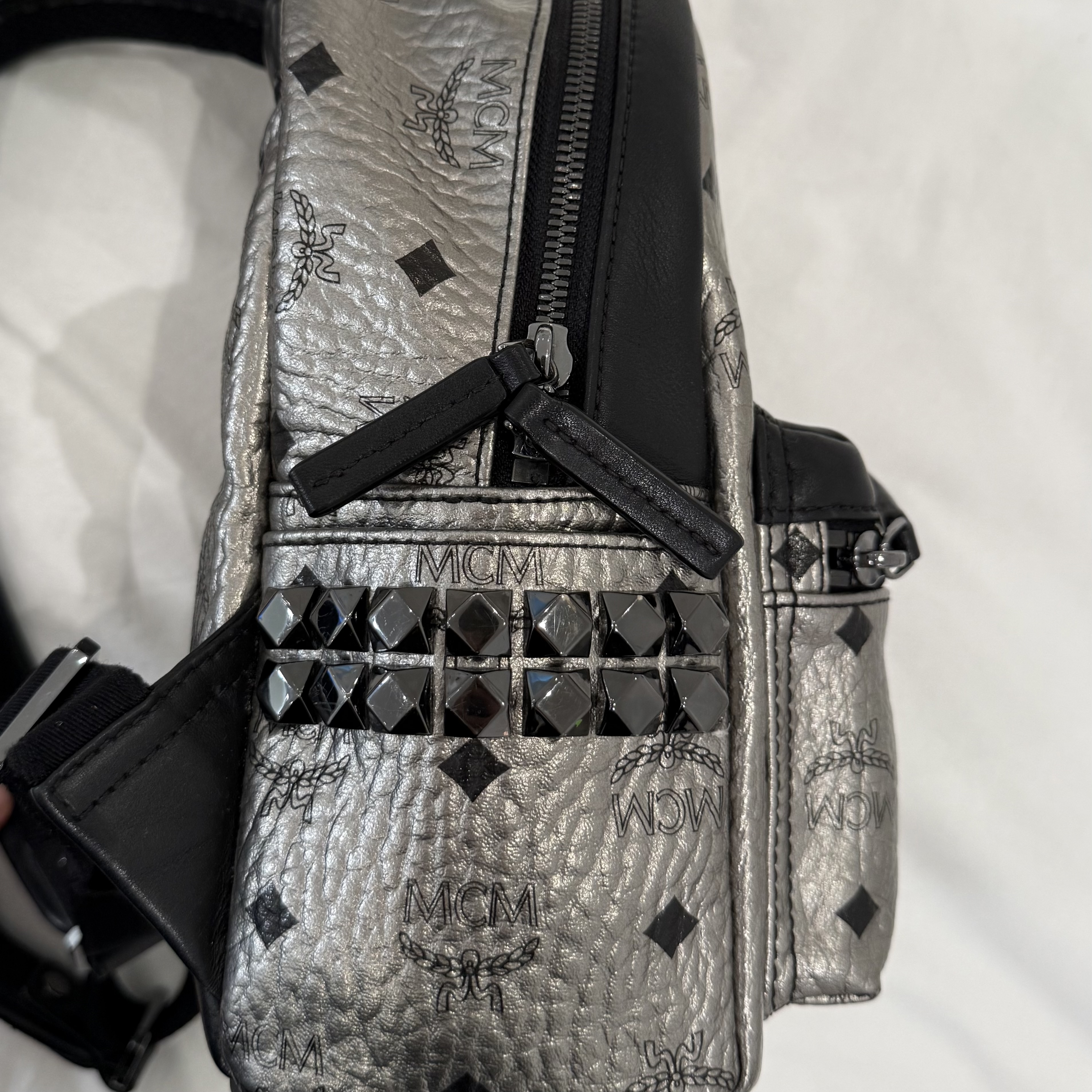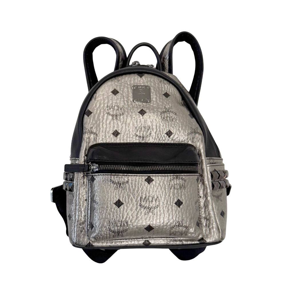 MCM Stark Side Button mini Backpack in Visetos (Limited edition) Silver and Black. Used but in good condition